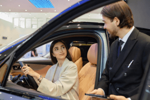 一生懸命仕事をしている車ディラーの販売員の覆面調査。